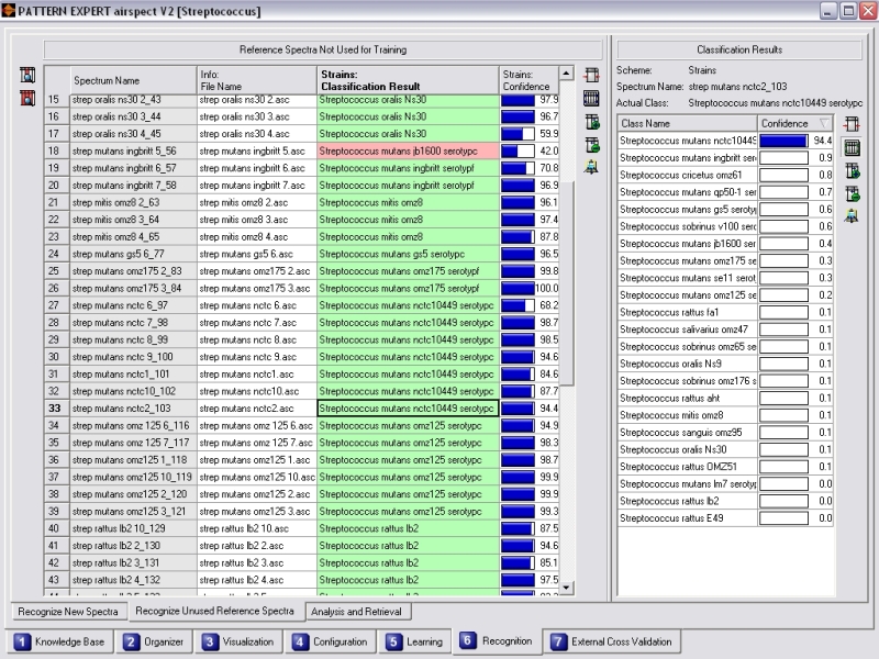 Verify the results and search for the most similar reference spectra providing evidence for class assignments.
