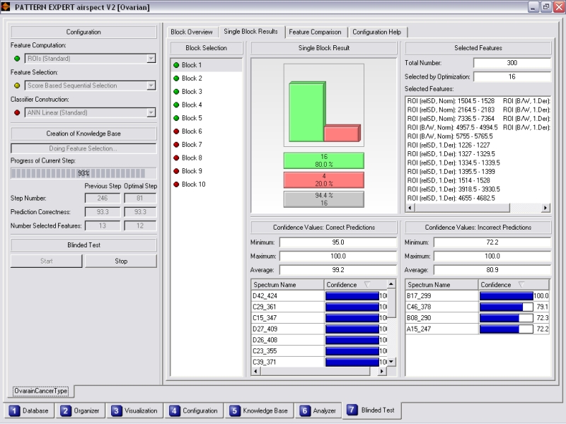 Single block analysis. Analyze the spectral features found to be useful and the calculated confidence values
