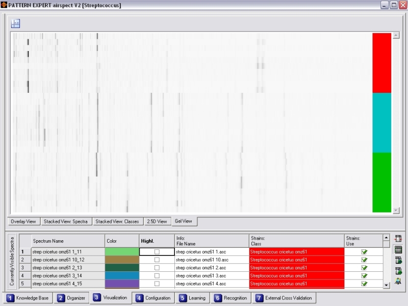 Top view of spectra ("GelView") - classes indicated by color codes.