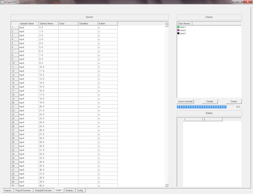 Information on classes and spectra as well as the classification system's state, presented in a clear manner.